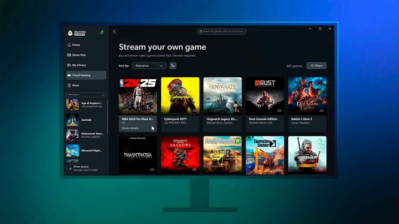 Xbox lanzó desde el 15 de julio en versión beta para Insiders la función “Transmite tu propio juego” en la app de PC. Se trata de una extensión del sistema de streaming que ya estaba activo en consolas, móviles, TV, navegadores y visores VR, permite jugar en el PC a títulos instalados en Xbox Series X|S o Xbox One sin necesidad de descargarlos, ahorrando espacio en disco y consumo de almacenamiento local.