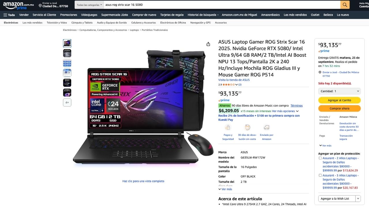 Sí, es un equipo costoso: con la configuración de 2 TB de almacenamiento, 64 GB de RAM y RTX 5080, su precio ronda los 93 mil pesos mexicanos. Pero la inversión se justifica si consideras que puede durarte entre 5 y 7 años.