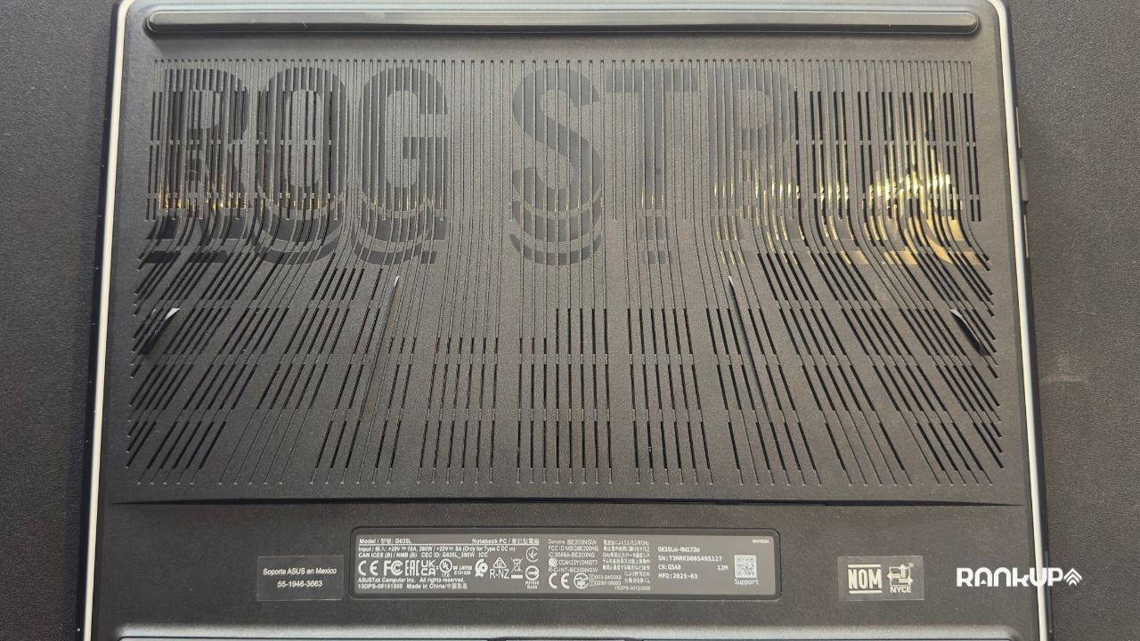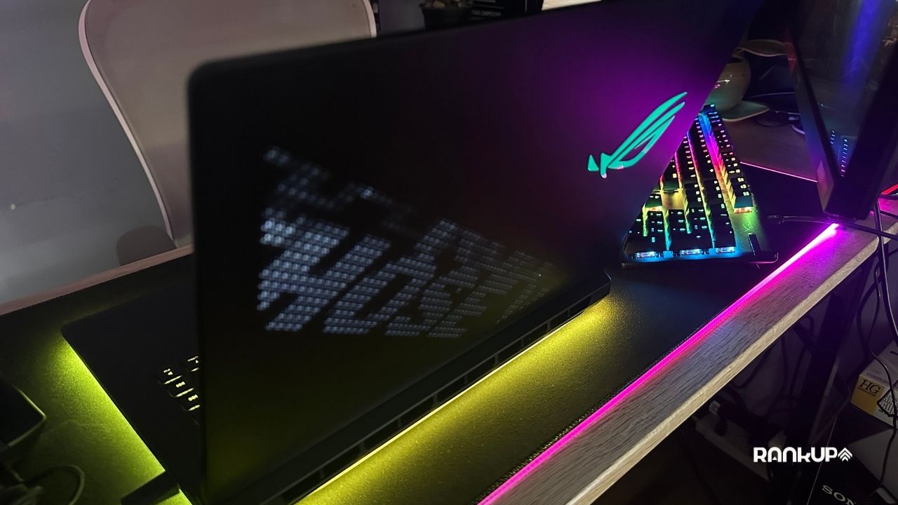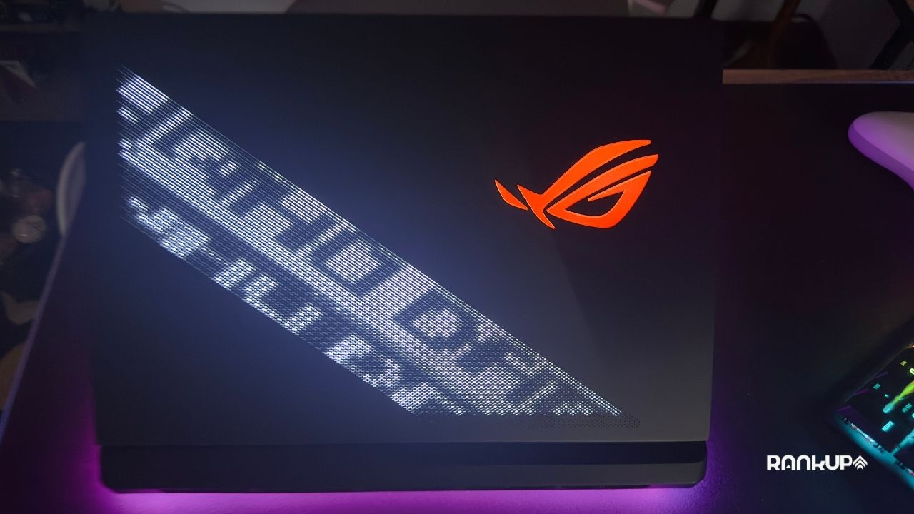 ASUS también incluyó AniMe Vision, una franja diagonal de LED blancos con un conjunto de 810 luces que brillan a través de los orificios fresados de la tapa. En cuanto a estética, poco más se le puede pedir a este equipo.