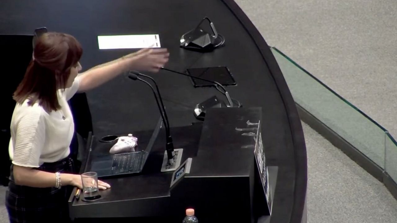 Con un control simbólico y un cartel que decía “Game Over a la censura. No a los impuestos absurdos”, la diputada Iraís Reyes de Movimiento Ciudadano subió a la tribuna del Congreso para rechazar el nuevo impuesto del 8% a los videojuegos violentos, defendiendo a la comunidad gamer y criticando la criminalización del entretenimiento digital.