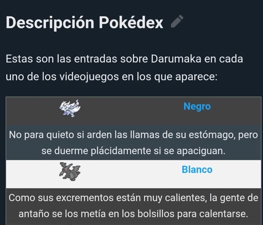 Sin embargo, los más veteranos recordaron que no es la primera vez que The Pokémon Company toca el tema: desde la quinta generación, con Darumaka, ya se mencionaba que sus excrementos podían usarse para calentar las manos en invierno.