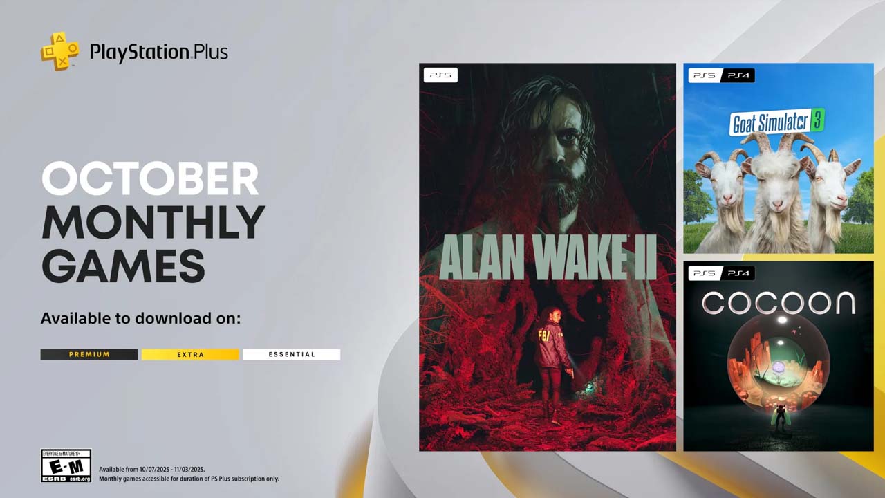 Los suscriptores de PlayStation Plus tienen hasta el 3 de noviembre para añadir Alan Wake 2, Goat Simulator 3 y Cocoon a su biblioteca antes de que sean reemplazados por los nuevos títulos.
