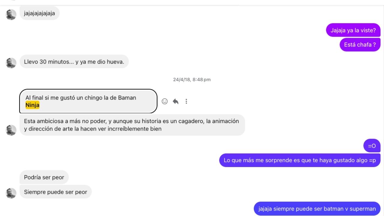 Estos días, revisando nuestras conversaciones antiguas, volvió a mí una oleada de recuerdos, bromas y charlas que se extendían por cientos de líneas.