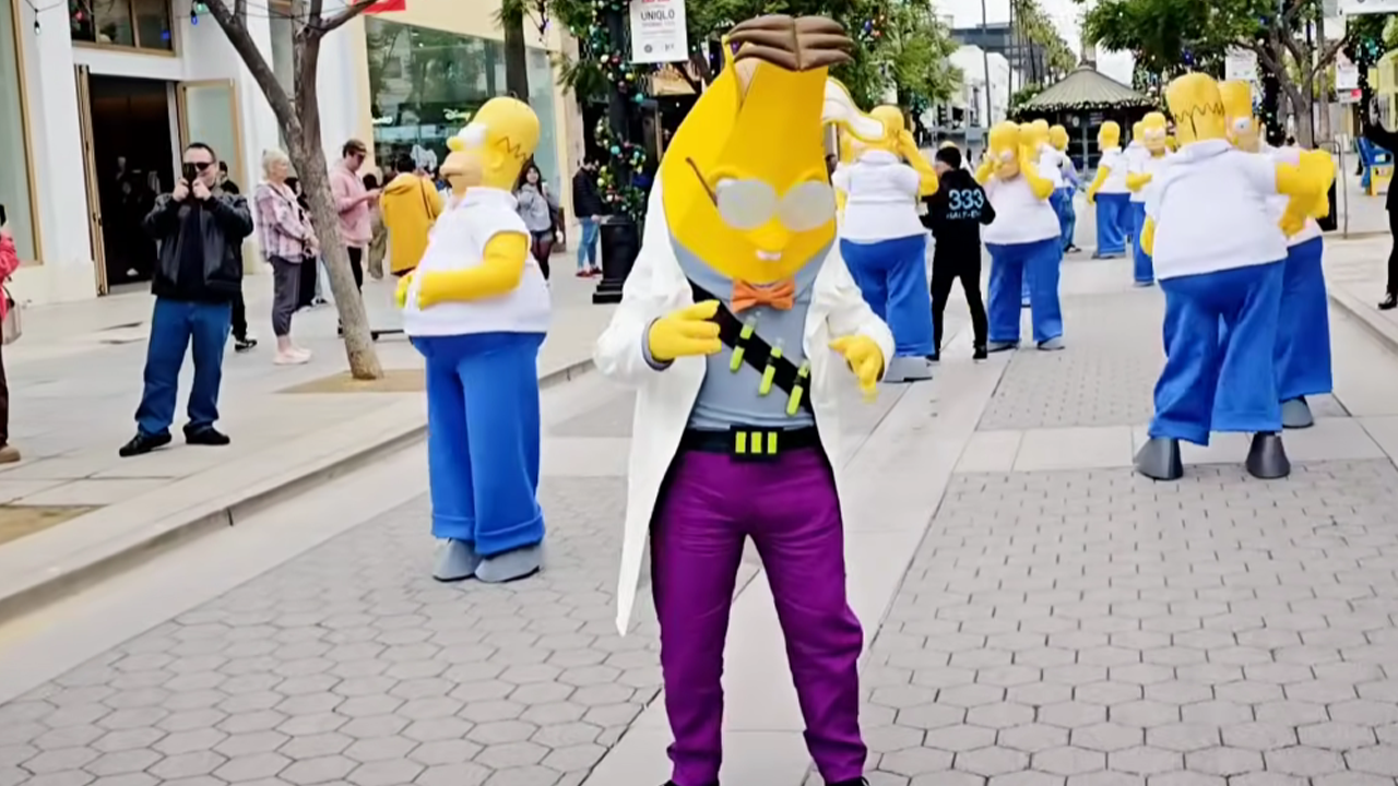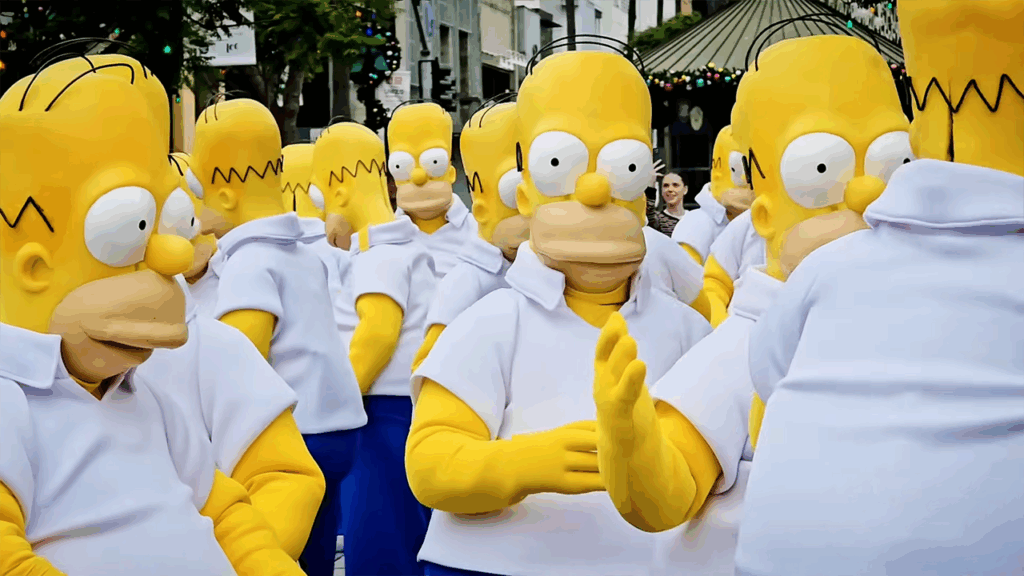 Turistas y peatones se encontraron rodeados de Homeros torpes, bailando, gesticulando y chocando entre sí como si hubieran sido arrancados directamente del crossover dentro del juego.