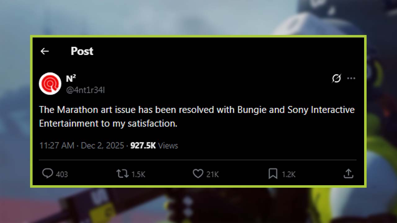 La artista Antireal confirmó que el caso de plagio en Marathon quedó resuelto satisfactoriamente tras llegar a un acuerdo con Bungie y Sony. Su obra utilizada sin permiso en el shooter, desencadenó una fuerte polémica. Aunque no reveló los términos, aseguró estar conforme mientras el proyecto continúa bajo escrutinio y sin fecha exacta de lanzamiento.