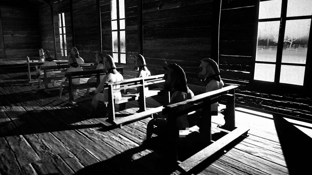 El título, desarrollado por el estudio italiano Santa Ragione, presenta un mundo inquietante poblado por humanos desnudos con máscaras de caballo utilizados como ganado.