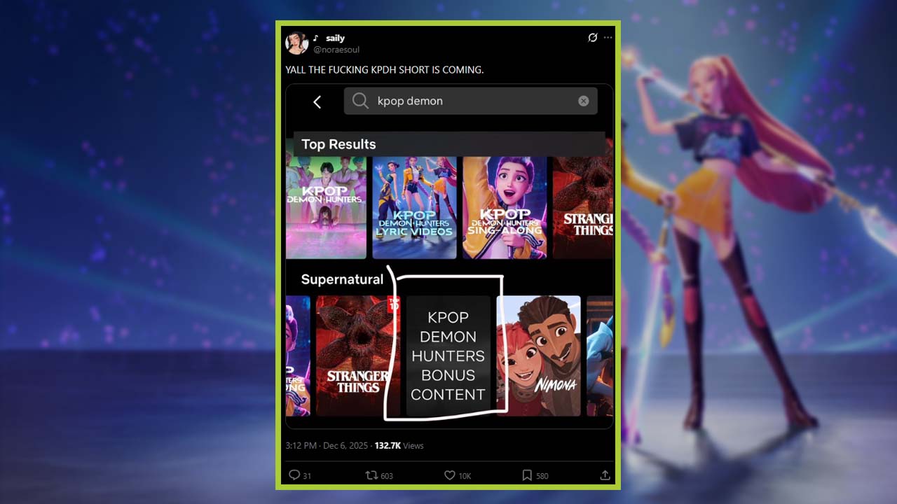 Todo comenzó cuando un fan compartió una captura donde, al buscar la película en la plataforma, aparecía un espacio vacío etiquetado como “KPop Demon Hunters Bonus Content”.