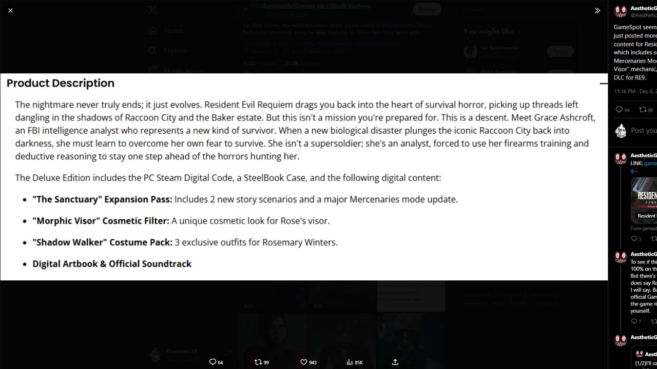 Una sorpresiva filtración de la Deluxe Edition de Resident Evil Requiem parece haber revelado a un segundo personaje jugable inesperado. Rosemary Winters. Aunque la mención fue eliminada rápidamente del sitio de GameStop, capturas previas indican contenido exclusivo para Rose, avivando nuevas teorías sobre su regreso pese a que Capcom afirmaba haber cerrado la saga Winters.