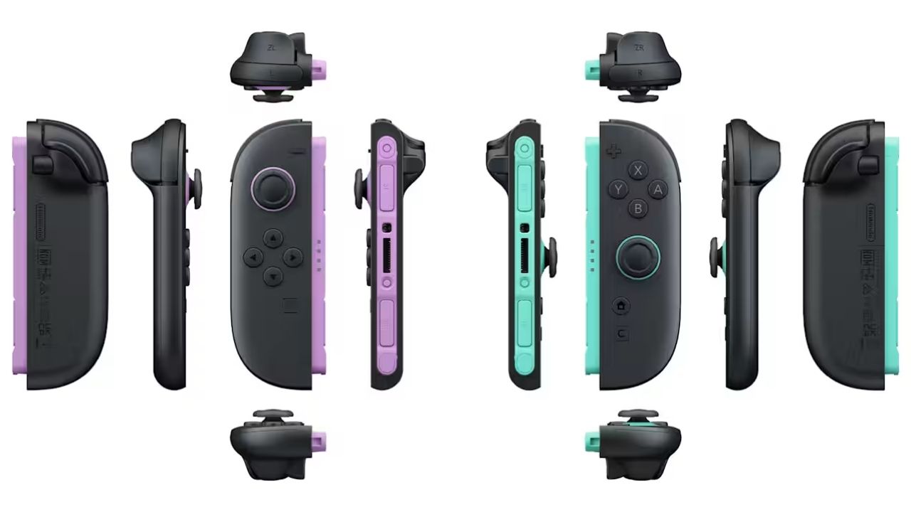 Los nuevos tonos se aprecian debajo del stick y en el costado del control, mientras que los laterales del Switch 2 seguirán conservando los colores azul y rojo tradicionales. Esto limita el impacto visual en la consola completa.