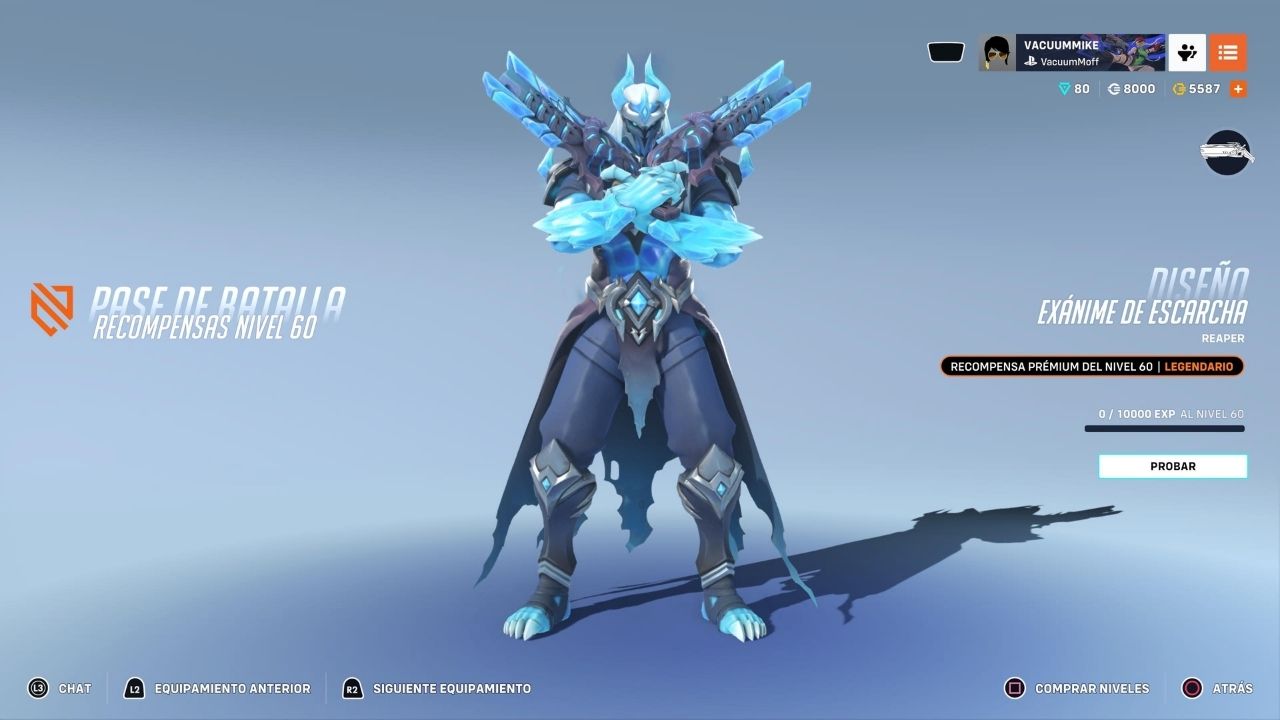 El nivel 60, con Reaper Exánime de Escarcha, marca uno de los mejores momentos del Battle Pass. El nivel de detalle, los colores, la ambientación y la presencia del personaje lo convierten en uno de los skins más atractivos de toda la temporada.