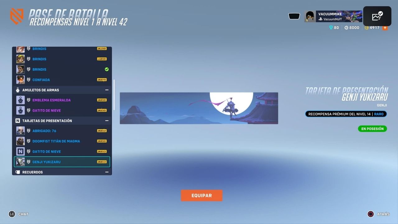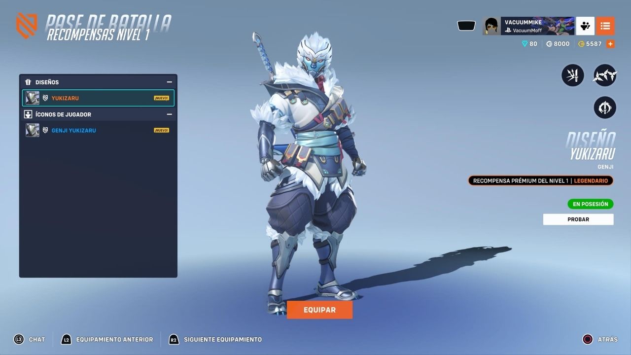 Desde el arranque, el pase  deja claro su enfoque premium con el skin inicial de Genji, un diseño invernal con tonos helados que luce elegante, bien trabajado y perfectamente integrado al estilo visual del juego.