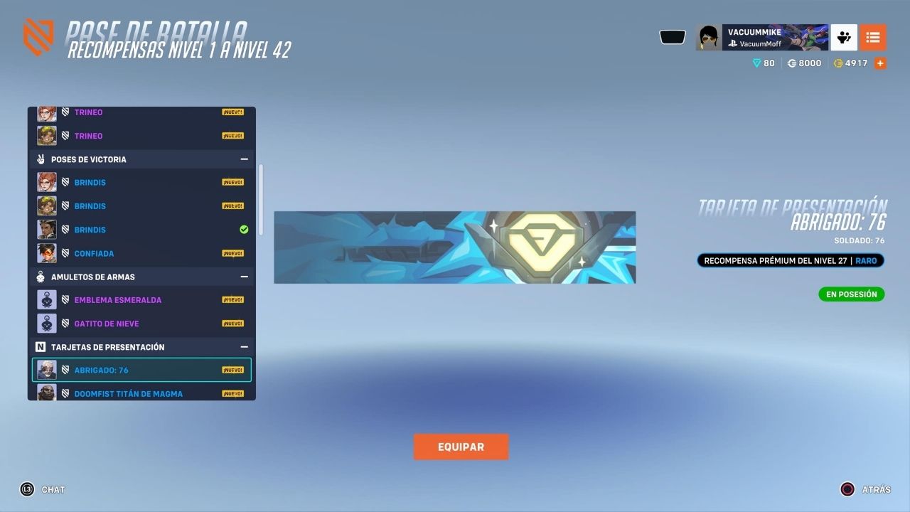 A lo largo de los primeros niveles, las recompensas cosméticas se mantienen constantes: gestos, tarjetas de presentación, sprays y poses de victoria que, sin ser todas memorables, cumplen bien su función.