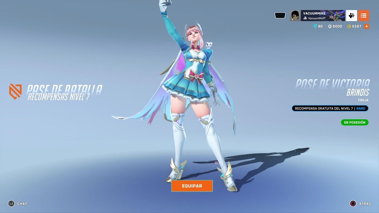 Destaca especialmente la pose de victoria de Freja en el nivel 7, que fácilmente alcanza un rango Épico por su animación y presencia.