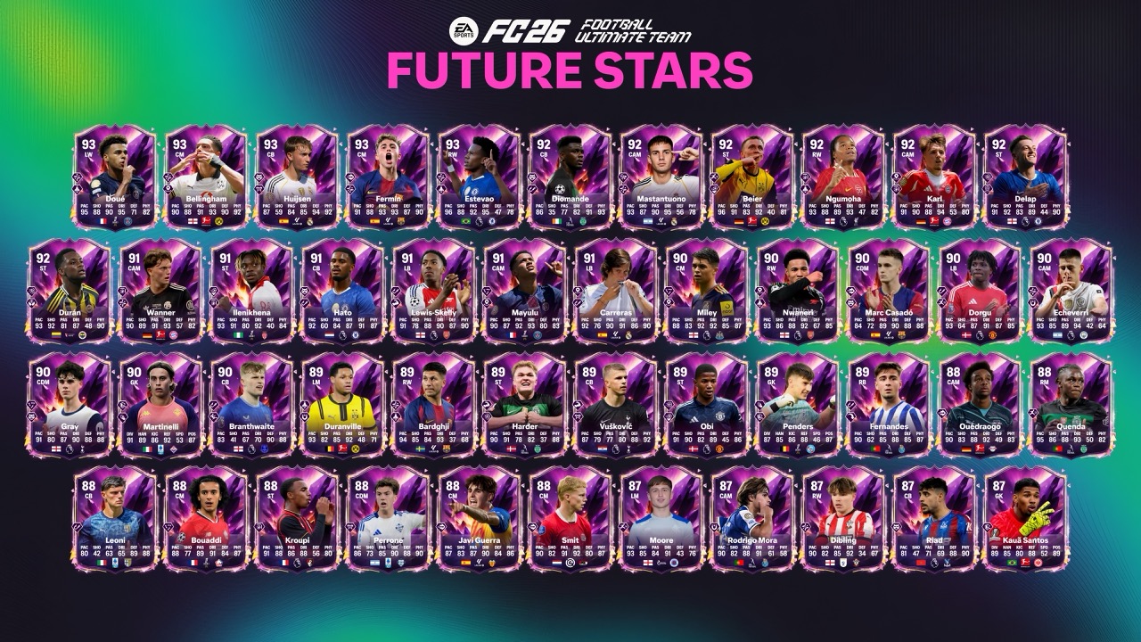 EA SPORTS FC 26 liberó el Equipo  de Futuras Estrellas con talentos sub-23 del fútbol mundial. La actualización incluye objetivos, evoluciones y nuevos desafíos de creación de plantillas. Figuran Calafiori, Fermín López, Nico Paz y Olivia Smith, ampliando la celebración de la próxima generación del deporte. Destacan jugadores como Riccardo Calafiori, Fermín López y más.