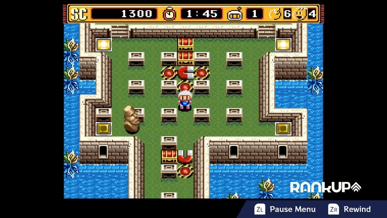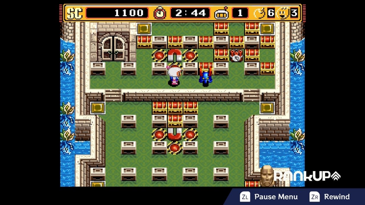 Eso sí, viene con el modo rewind para que regreses en el tiempo si te equivocaste y dejaste una bomba en el lugar incorrecto y con diferentes puntos para guardar, tal como pasa con los juegos de las Consolas Clásicas de Switch Online.