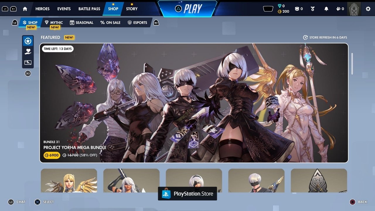El primer punto que resalta es cómo al colocarte sobre el menú de compra del Megalote, suena el tema de Nier y luego quedas deslumbrado por la fidelidad estética de los diseños de los skins.