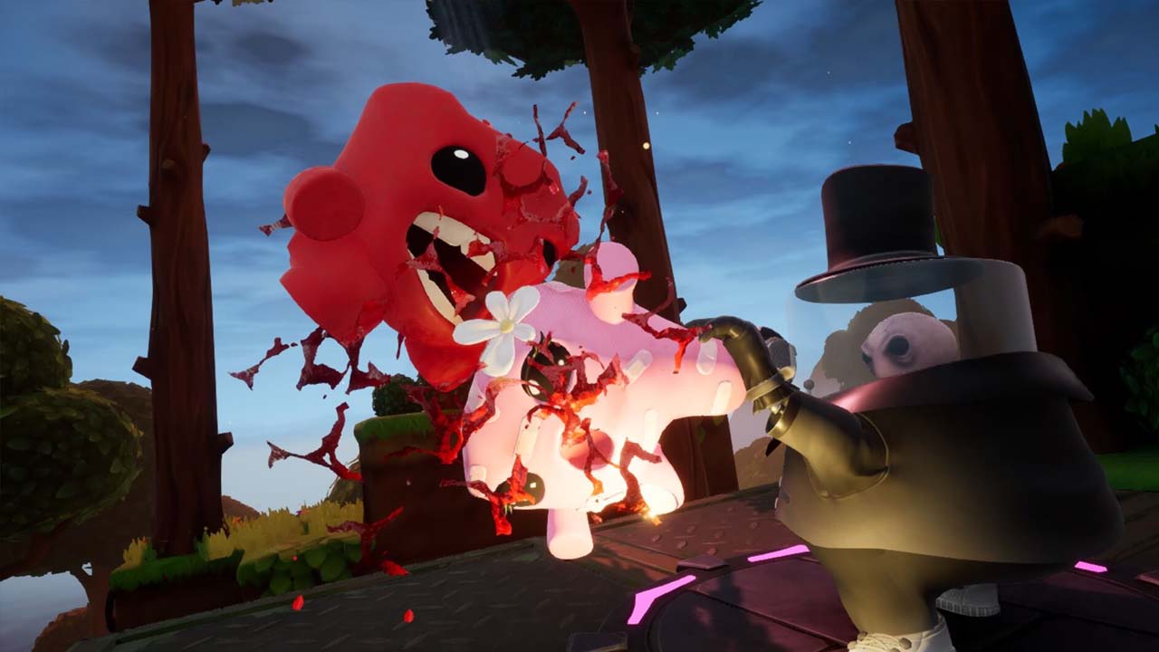 El título conserva la estética grotesca y colorida de la franquicia, pero con modelos 3D detallados y entornos que incluyen elementos dinámicos como robots y criaturas extrañas.