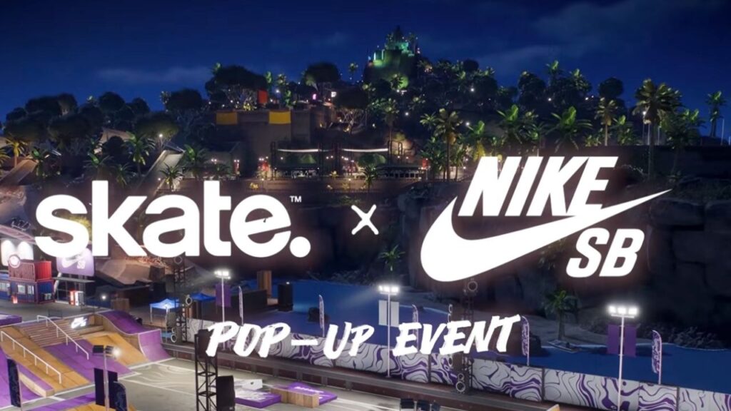 Skate. recibe una colaboración con Nike SB que introduce eventos, cosméticos exclusivos y la posibilidad de patinar de noche, reforzando su apuesta por recrear la cultura real del skateboarding. El contenido principal gira en torno a Pop-Up Nike SB, un evento por tiempo limitado disponible hasta el 5 de mayo. Este evento introduce Grom